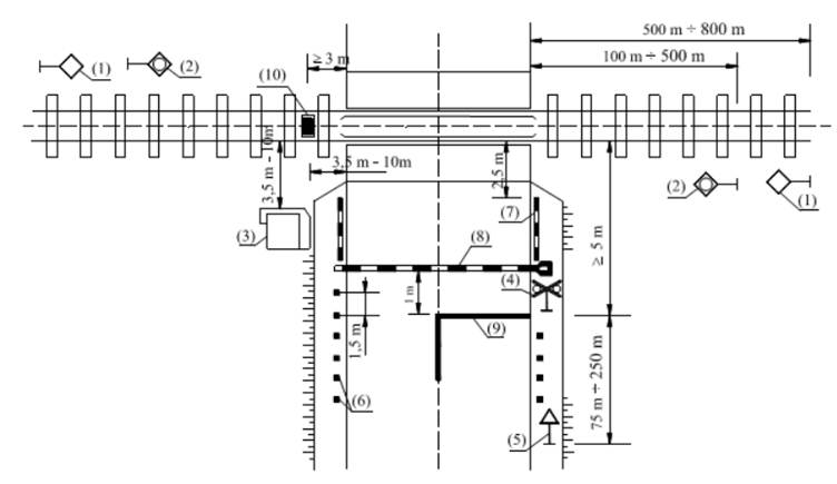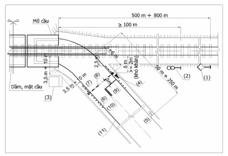 (2): Chiều dài từng đoạn đường nhánh (m) có tốc độ kỹ thuật cho phép của công trình đường sắt như nhau.