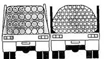 1. Hàng hóa hình trụ ống được xếp nằm ngang hoặc nằm dọc theo chiều dài xe tùy thuộc vào chiều dài của hàng so với thùng xe. Khi đặt nằm ngang cần đặt vuông góc với chiều dài xe.