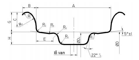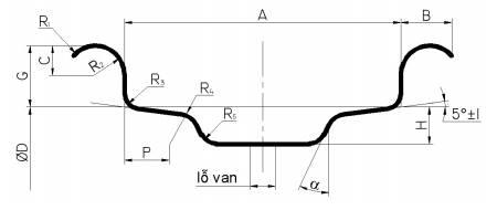 2.1.5 Kích thước và dung sai của vành, vành bánh xe phải đúng theo tài liệu thiết kế hoặc tài liệu kỹ thuật của cơ sở sản xuất. Vành tâm lõm (kiểu WM, MT, LF) phải có kích thước và dung sai theo phụ lục A của Quy chuẩn này.