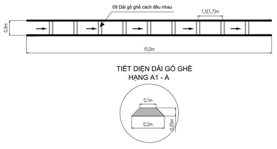- Đối với mặt làn đường và hình sát hạch thảm bê tông xi măng: cường độ chịu nén yêu cầu tối thiểu là 30 Mpa;