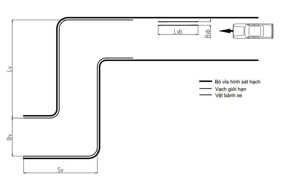 2. Quy chuẩn về làn đường trong sân sát hạch như sau: