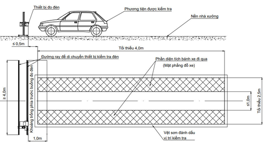 2.3.5. Thiết bị kiểm tra đèn chiếu sáng phía trước: kiểm tra được loại đèn chiếu sáng phía trước của xe được bảo hành, bảo dưỡng theo các tiêu chí kiểm tra sau (không áp dụng đối với cơ sở bảo hành, bảo dưỡng rơ moóc, sơ mi rơ moóc):