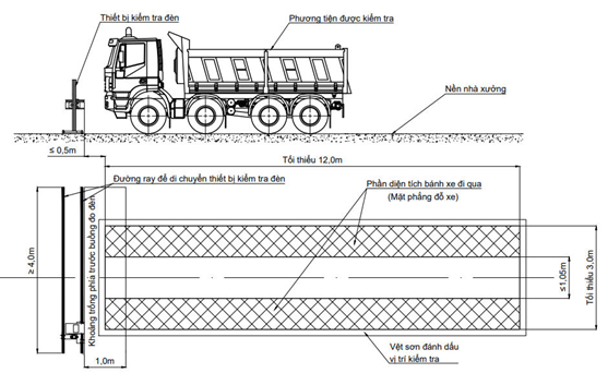 - Xưởng kiểm định chỉ có một dây chuyền kiểm định loại I (dài x rộng x cao): 30 x 4 x 3,5 (m).