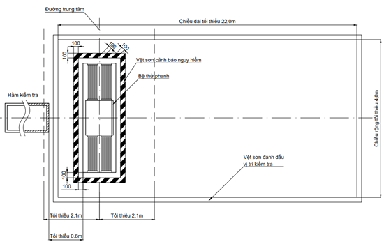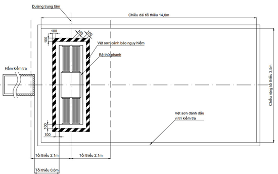 2.2.2.2. Hầm kiểm tra xe (áp dụng đối với cơ sở bảo hành, bảo dưỡng các loại xe: ô tô khách trên 16 chỗ, ô tô tải và ô tô chuyên dùng có khối lượng toàn bộ trên 3,5 tấn trong trường hợp cơ sở không trang bị cầu nâng hoặc bàn nâng xe phù hợp)