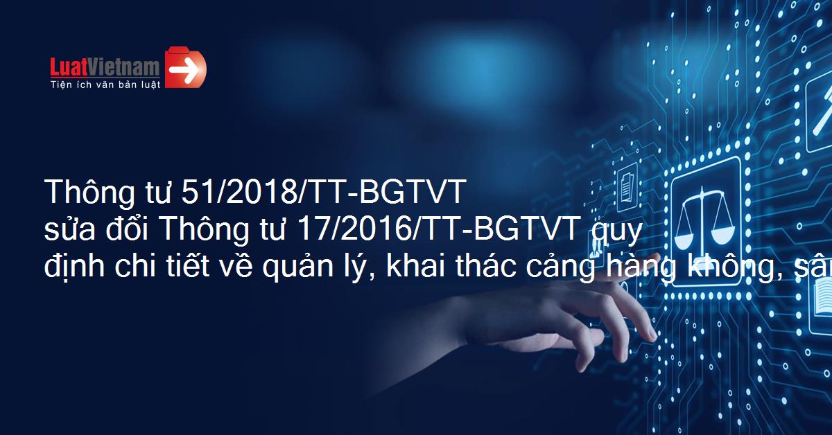 Thông tư 51/2018/TT-BGTVT sửa đổi Thông tư 17/2016/TT-BGTVT quy định chi tiết về quản lý, khai thác cảng hàng không, sân bay