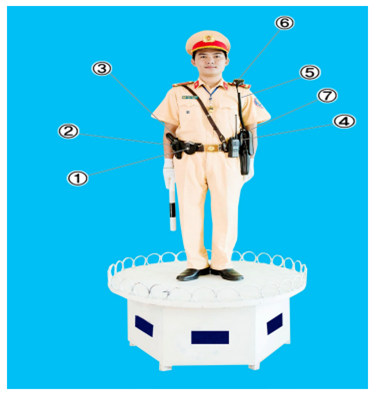 6. Micrô bộ đàm 7. Gậy điện |