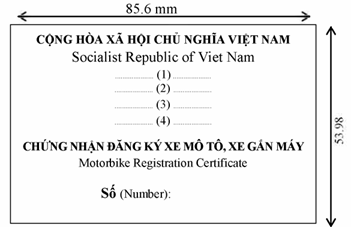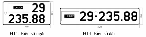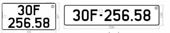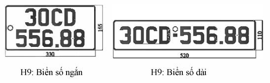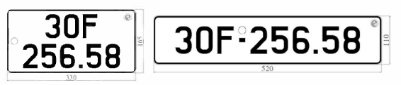 - Riêng nét gạch ngang (-) phân cách giữa sê ri đăng ký với nhóm số thứ tự đăng ký có kích thước dài 9 mm rộng 6 mm.