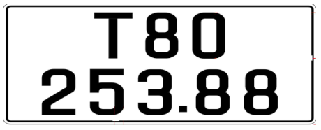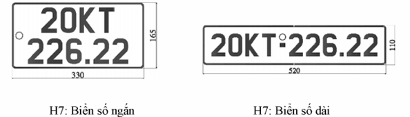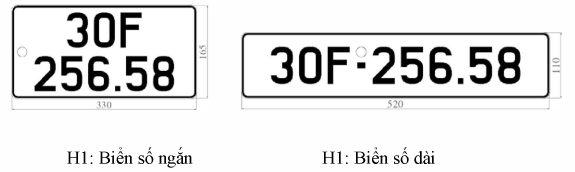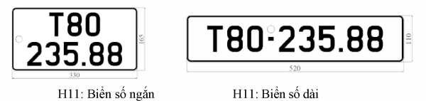 - Biển dài: Nhóm thứ nhất gồm chữ “T” và ký hiệu địa phương đăng ký, Nhóm thứ hai là thứ tự đăng ký, từ 000.01 đến 999.99. Giữa hai nhóm có gạch ngang (-).