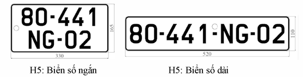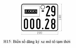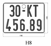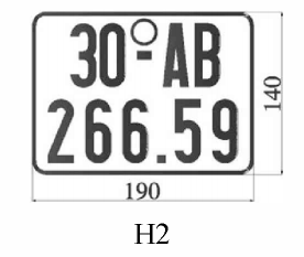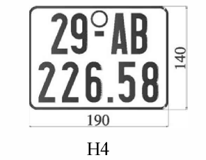 - Kích thước chữ, số, ký hiệu như quy định đối với biển số mô tô trong nước. ( Hình vẽ H15)