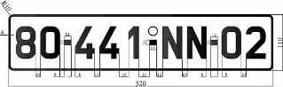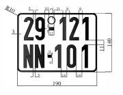 - Ở hàng dưới khoảng cách giữa các chữ và số là 10mm; trường hợp hàng dưới biển số xe mô tô có chứa số 1 thì khoảng cách giữa số 1 và chữ, số bên cạnh là 14mm; khoảng cách giữa 2 số 1 là 18mm (khoảng cách 2 nét chính là 25mm)
