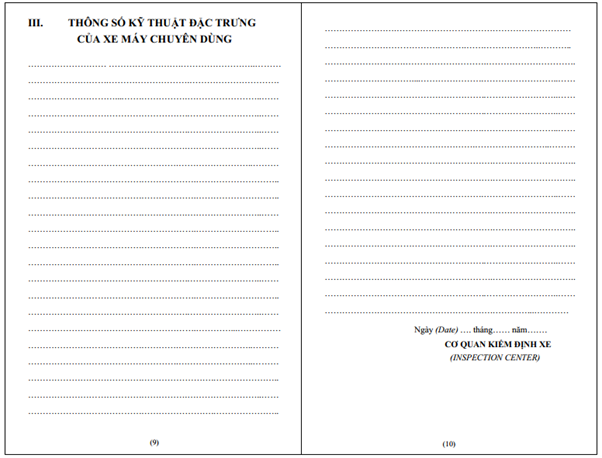 8. Bản đăng ký thông số kỹ thuật xe mô tô, xe gắn máy nhập khẩu (Mẫu KĐ03).