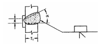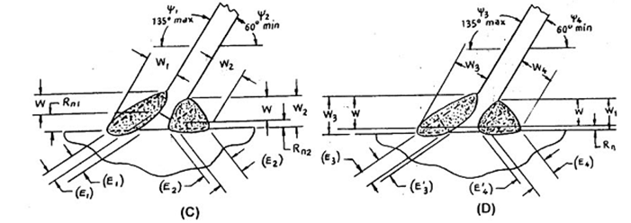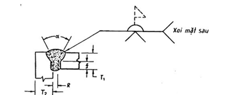 2.2.2. Đối với mối hàn góc: Mặt cắt hiệu dụng của mối hàn góc bằng chiều dài hiệu dụng nhân với chiều sâu hiệu dụng. Ứng suất của mối hàn góc được tính ở mặt cắt hiệu dụng này, bất kể hướng của lực tác dụng.