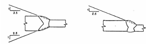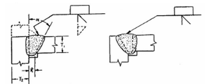 2.1.4. Trên bản vẽ thiết kế cần chỉ ra các mối hàn vát mép ngấu hoàn toàn và ngấu không hoàn toàn. Ký hiệu không kích thước để chỉ mối hàn ngấu hoàn toàn như sau: