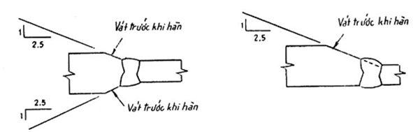 2.2.1. Với mối hàn đối đầu: Diện tích mặt cắt hiệu dụng bằng chiều dài hiệu dụng nhân với chiều sâu hiệu dụng của mối hàn.