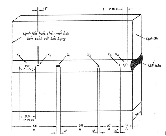 2. X1 - Kích thước lớn nhất cho phép đối với khuyết tật dạng rỗ ở liên kết dày 20mm.