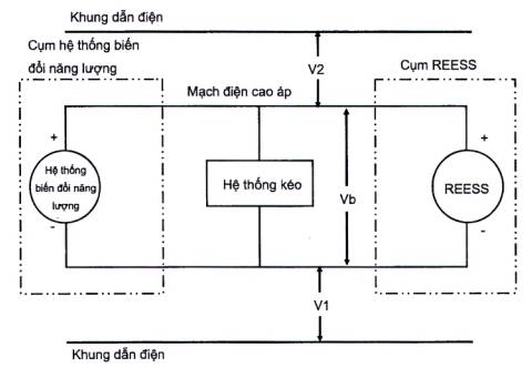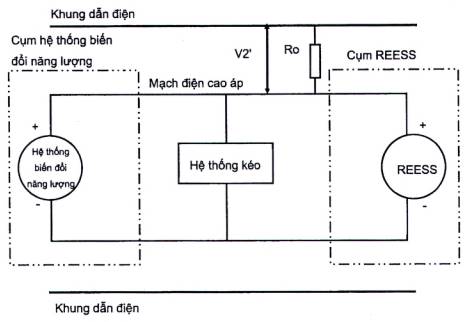 Mạch điện bao gồm (các) động cơ kéo và có thể bao gồm REESS, hệ thống biến đổi điện năng, bộ chuyển đổi điện tử, dây nối và các đầu kết nối với hệ thống lưu trữ năng lượng có thể sạc lại REESS.