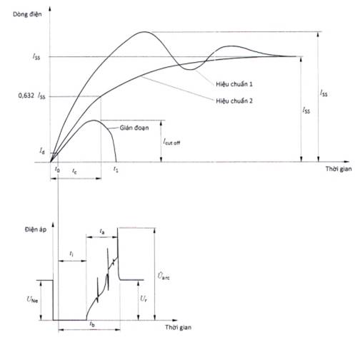 Thời gian phóng hồ quang sẽ có sự phân tán rộng ở mỗi giá trị của dòng điện.