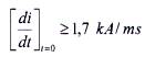 22) Thời gian cắt là hàm của tốc độ tăng dòng điện (di / dt);