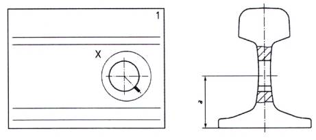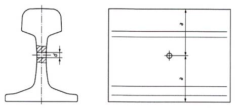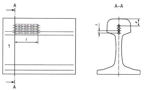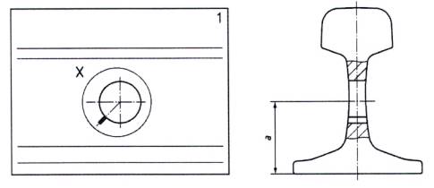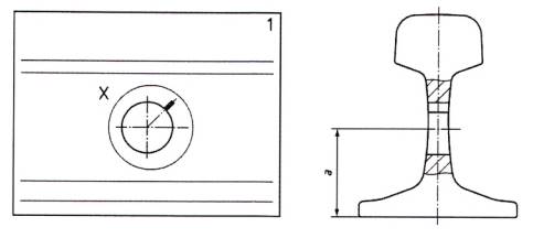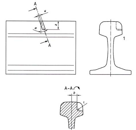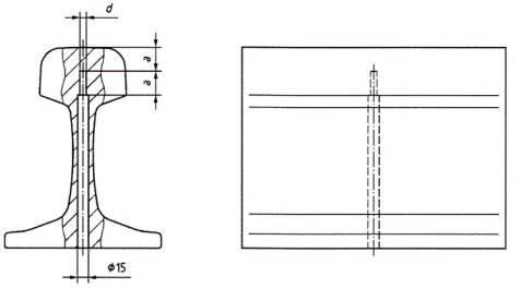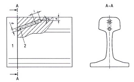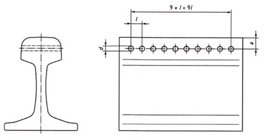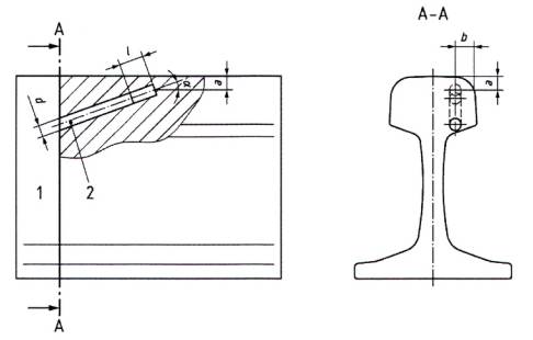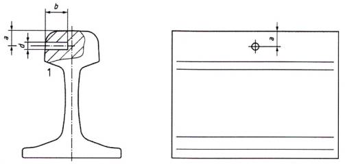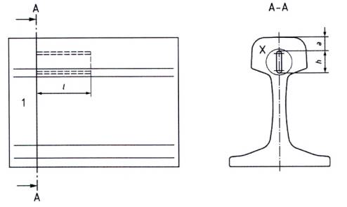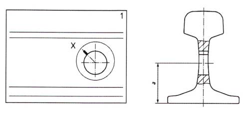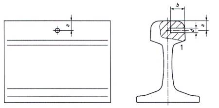 Số 02 bao gồm bốn lỗ trên thanh ray. Hai lỗ cho hướng tiến và hai lỗ cho hướng lùi. Khoảng cách từ mặt lăn ray (xem Hình A.2) có thể được chọn trong phạm vi từ 10 mm đến 20 mm. Các lỗ trên mỗi hướng có đường kinh lần lượt là 5 mm và 10 mm.