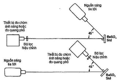 Hình D.1: Sơ đồ sắp xếp thích hợp cho hiệu chỉnh cho máy đo màu đơn sắc hoặc máy đo chùm quang phổ