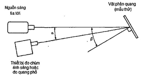 D.4.3.1 Sử dụng máy đo chùm quang phổ ở vị trí xa: Phương pháp này sử dụng đo chùm quang phổ ở vị trí xa để đo lượng phân bố quang phổ của ánh sáng tại bề mặt mẫu và lượng ánh sáng tại vị trí thiết bị nhận. Sử dụng phương pháp này không yêu cầu nguồn sáng phải đạt nhiệt độ hoặc cường độ nhất định được hiệu chỉnh chính xác. Tuy nhiên, máy đo chùm quang phổ phải tuyến tính, và tỷ lệ bước sóng phải được hiệu chỉnh. Tập hợp quang học của máy đo chùm quang phổ được điều chỉnh để, khi đặt tại vị trí thiết bị nhận, cả mẫu màng phản quang đều nằm trong vùng quan sát hoặc toàn bộ vùng quan sát. Trong trường hợp là thiết bị phản quang, những điều kiện này được khuyến khích. Khi toàn bộ bề mặt mẫu nằm trong vùng quan sát, vùng quan sát nên rộng hơn vật mẫu để tránh những vấn đề về thẳng hàng, nhưng không quá rộng hơn mẫu sẽ gây khó khăn để tập hợp rải rác ánh sáng. Khi toàn bộ vùng quan sát nằm trong bề mặt mẫu phản quang, kích cỡ nên nhỏ hơn vùng mẫu để tránh vấn đề không thẳng hàng, nhưng không nên quá nhỏ có thể gây khó khăn với mẫu không đồng nhất.