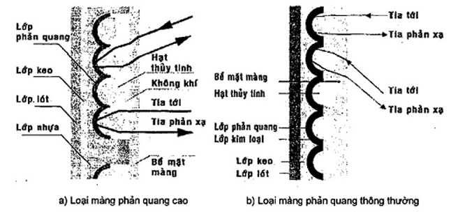 | Loại | Đặc tính phản quang | Cấu tạo hạt phản quang |
