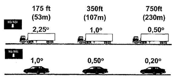 Hình E.2 (Ví dụ): Tương quan các loại xe và góc quan sát với vị trí