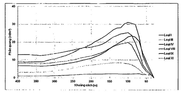 Biểu đồ về lượng ánh sáng về mắt người điều khiển phương tiện so sánh giữa các loại màng khác nhau: