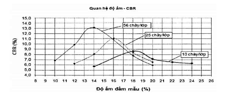 Ví dụ xác định giá trị CBR trong một khoảng độ ẩm đầm nén