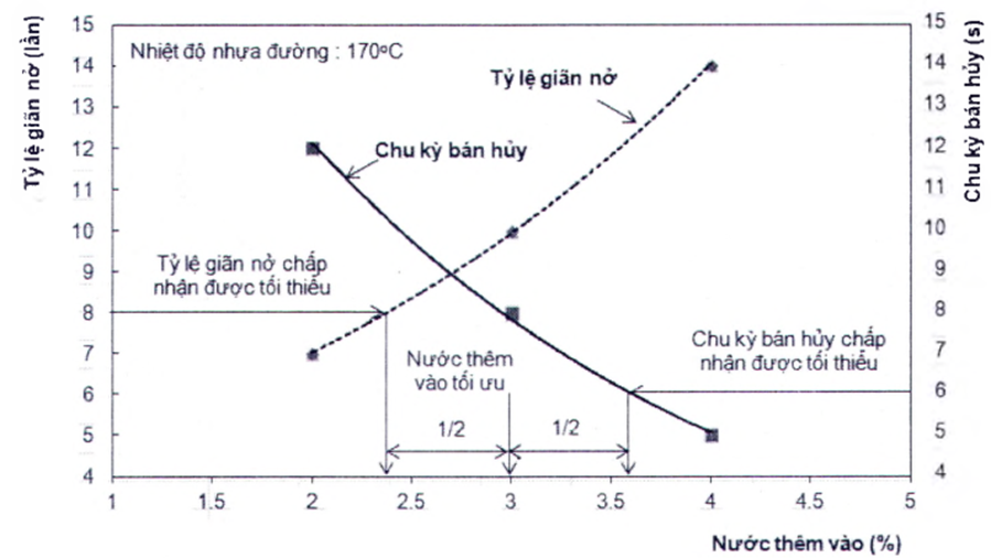 - Tỷ lệ giãn nở (lần): Tỷ lệ giãn nở tối đa so với thể tích ban đầu của nhựa đường;