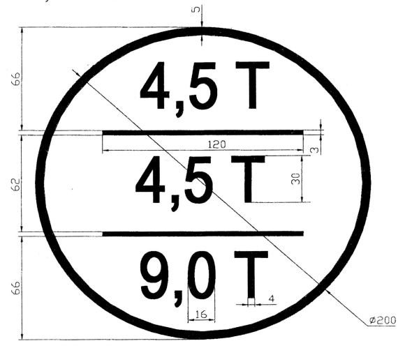 + Ô tô tải, ô tô đầu kéo: Nội dung thông tin thể hiện trong hình tròn đường kính 200mm (Mục 4, 5 Phụ lục này).