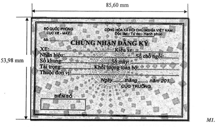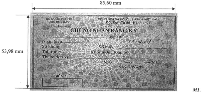 11 Mẫu này được bổ sung theo quy định tại Điểm b Khoản 8 Điều 1 của Thông tư số 172/2018/TT-BQP sửa đổi, bổ sung một số điều của Thông tư số 102/2016/TT-BQP ngày 29 tháng 6 năm 2016 của Bộ trưởng Bộ Quốc phòng quy định đăng ký, quản lý, sử dụng xe cơ giới trong Bộ Quốc phòng, có hiệu lực thi hành kể từ ngày 10 tháng 02 năm 2019.
