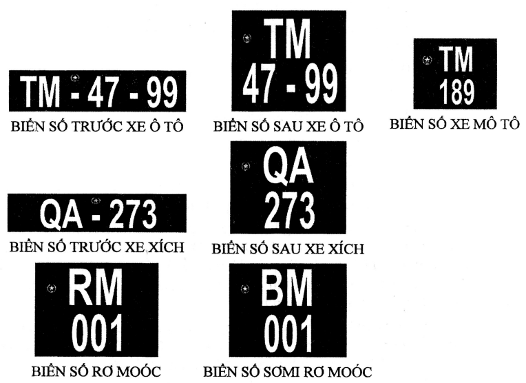 + Đối với bảng kim loại gắn trên rơ moóc, sơmi rơ moóc chọn nền màu trắng, chữ và số màu đen.