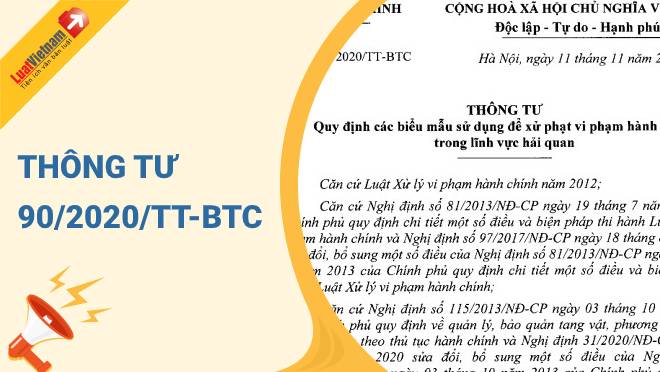 Ngày 11/11/2020, Bộ Tài chính ban hành Thông tư 90/2020/TT-BTC về việc quy định các biểu mẫu sử dụng để xử phạt vi phạm hành chính trong lĩnh vực hải quan.