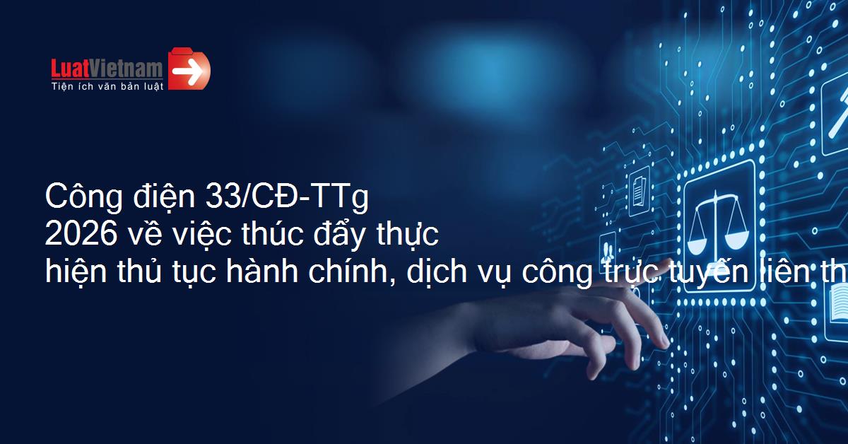 Công điện 33/CĐ-TTg 2026 về việc thúc đẩy thực hiện thủ tục hành chính, dịch vụ công trực tuyến liên thông, đồng bộ, hiệu quả, không bị gián đoạn