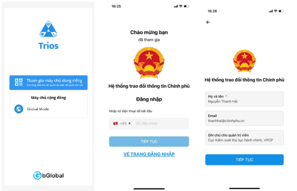 Ứng dụng cung cấp tài khoản truy cập máy chủ Hệ thống trao đổi thông tin Chính phủ cho người dùng thông qua “kiểm soát” của Quản trị hệ thống.