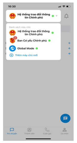 Giao diện ứng dụng sau khi đăng nhập máy chủ Hệ thống trao đổi thông tin Chính phủ thành công: