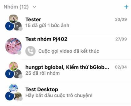 - Hệ thống hiển thị kết quả tại các tab Danh bạ, Nhóm, Tin nhắn.