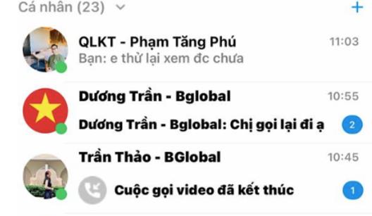 - Đối với cuộc hội thoại cá nhân, sau khi xoá thì thông tin cuộc hội thoại sẽ không hiển thị ở màn hình danh sách, nội dung cuộc hội thoại sẽ bị xoá, người dùng vẫn có thể tìm kiếm thông tin người dùng để tiếp tục cuộc hội thoại nhưng sẽ không còn nội dung trao đổi trước đó.