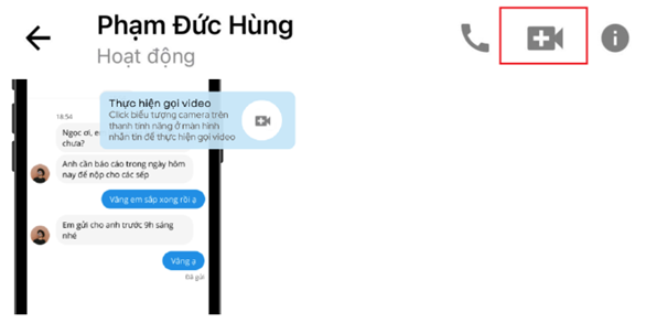 Ứng dụng hỗ trợ gọi video cuộc gọi đơn 1-1. Người dùng thực hiện gọi từ màn hình thoại cá nhân và chọn vào biểu tượng “Máy quay” trên thanh tính năng để gọi video.