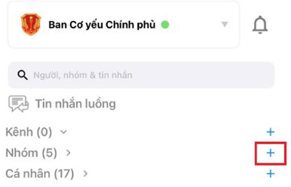 Tại giao diện tin nhắn, tại mục “Kênh”, chọn biểu tượng “+” để tạo kênh và thêm người dung khác vào kênh đó