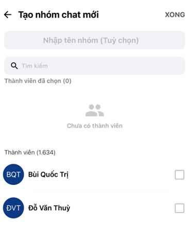Nhập tên Nhóm, tìm kiếm và tích chọn Người dùng khác để thêm vào nhóm