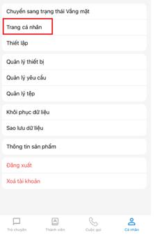 Bước 1. Chọn “Trang cá nhân” để mở giao diện thông tin cá nhân
