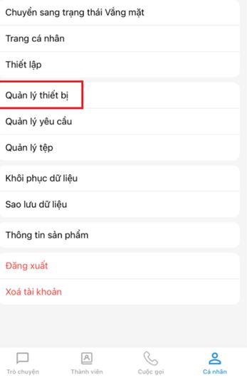 Chức năng cho phép người dùng quản lý được các thiết bị đăng nhập ứng dụng bằng tài khoản của người dùng, cho phép cài đặt thiết bị nào là thiết bị chủ, đồng thời có thể chuyển quyền thiết bị để quản lý