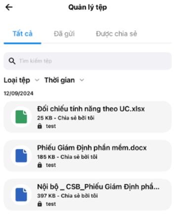 Chức năng cho phép người dùng quản lý các tệp đã gửi như tệp tài liệu, ảnh, video