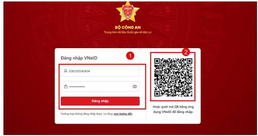 (2) Quét mã QRCode tài khoản VneID để đăng nhập
