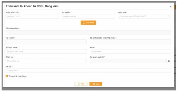 2.2.1. Cập nhật, khai báo tài khoản cho các đơn vị cấp dưới thuộc tổ chức đảng