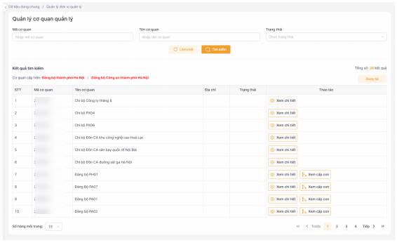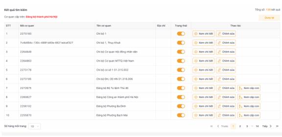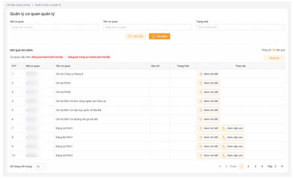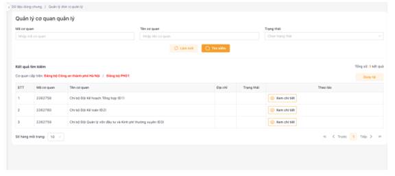 Bước 4: Xem danh sách cơ quan Đảng bộ bộ phận