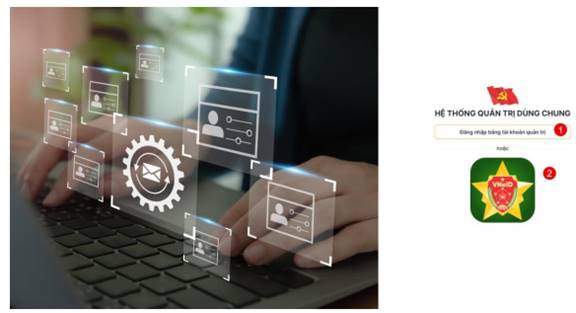 - Cán bộ được phân quyền quản trị chọn đăng nhập qua một trong 2 cách: đăng nhập bằng tài khoản hoặc VNeID.