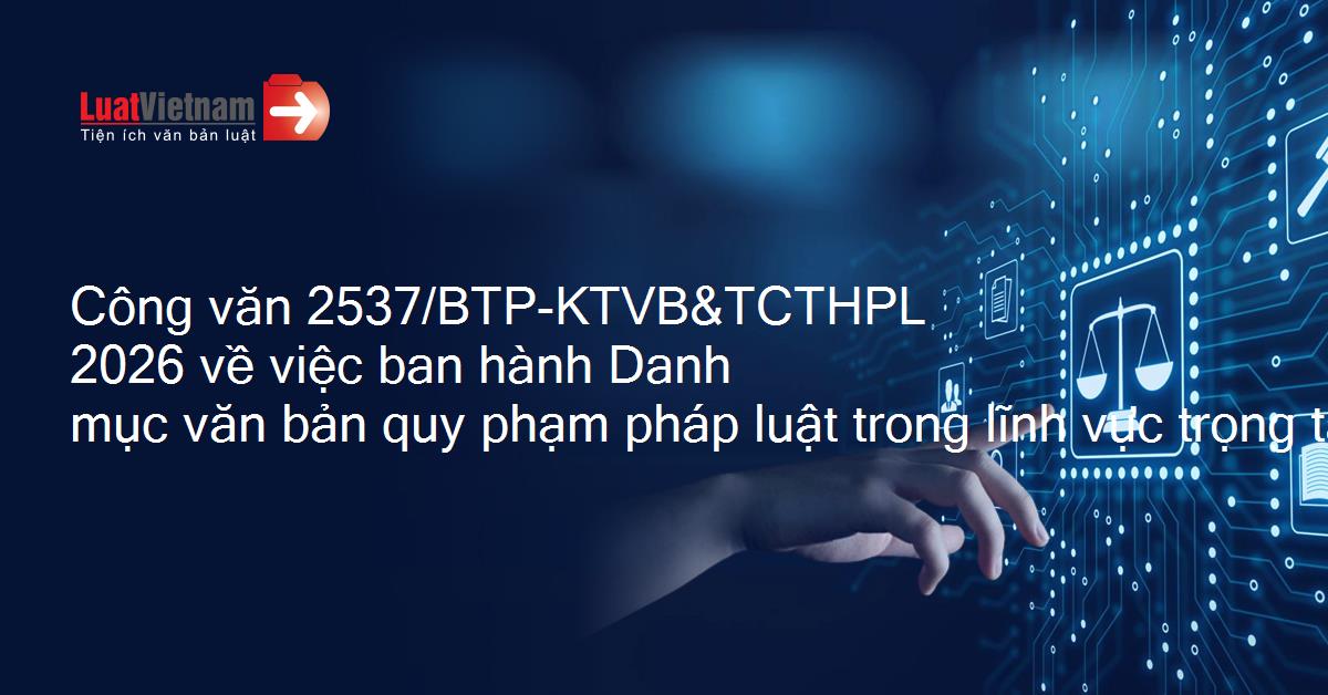 Công văn 2537/BTP-KTVB&TCTHPL 2026 về việc ban hành Danh mục văn bản quy phạm pháp luật trong lĩnh vực trọng tâm, liên ngành
